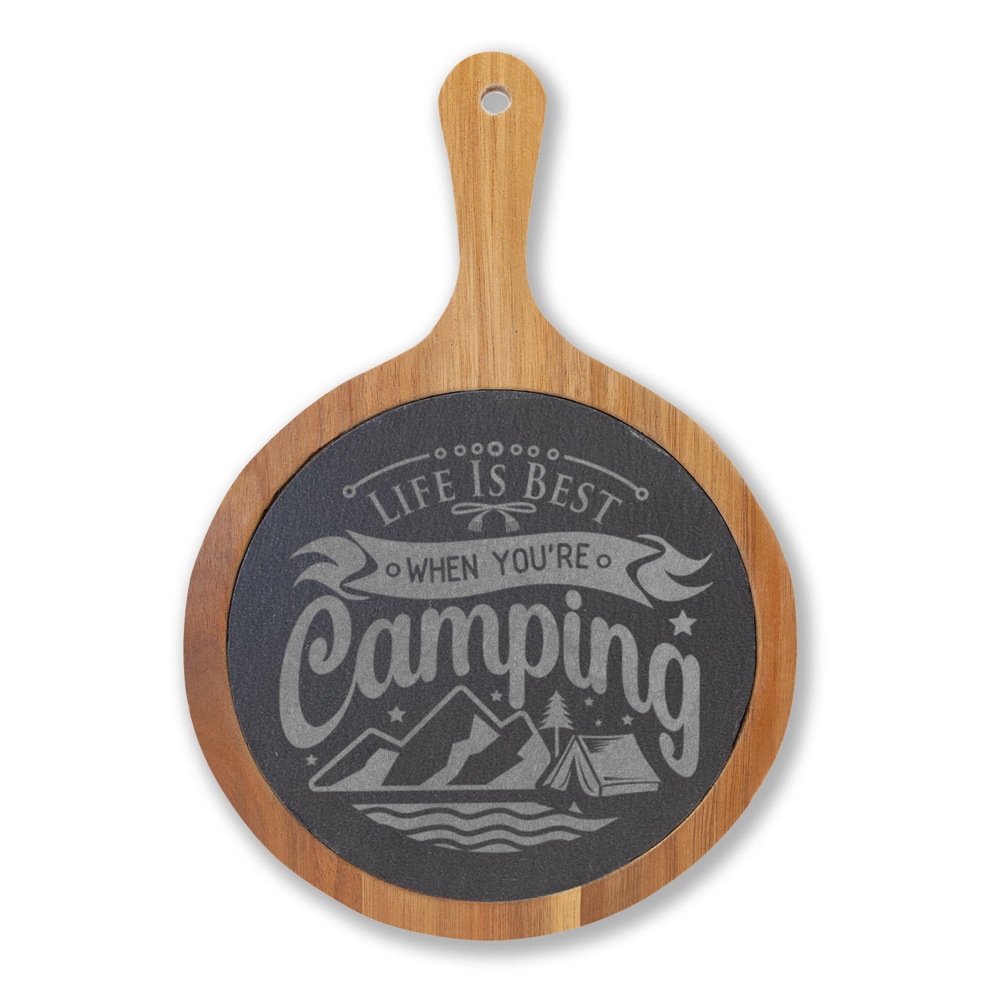 This engraved Charcuterie Board embodies a cozy camping atmosphere, perfect for outdoor and indoor gatherings. Ideal for camping enthusiasts and outdoor lovers, it adds a rustic touch to any occasion, from picnics to holiday celebrations.