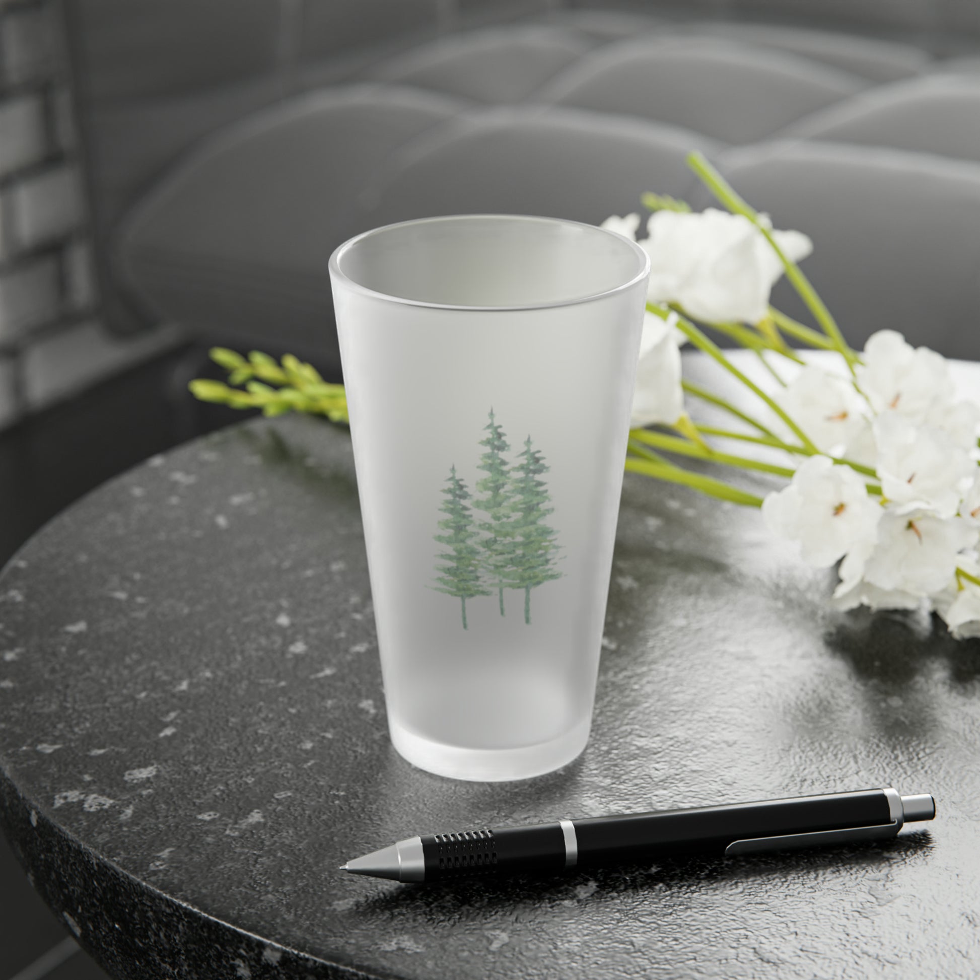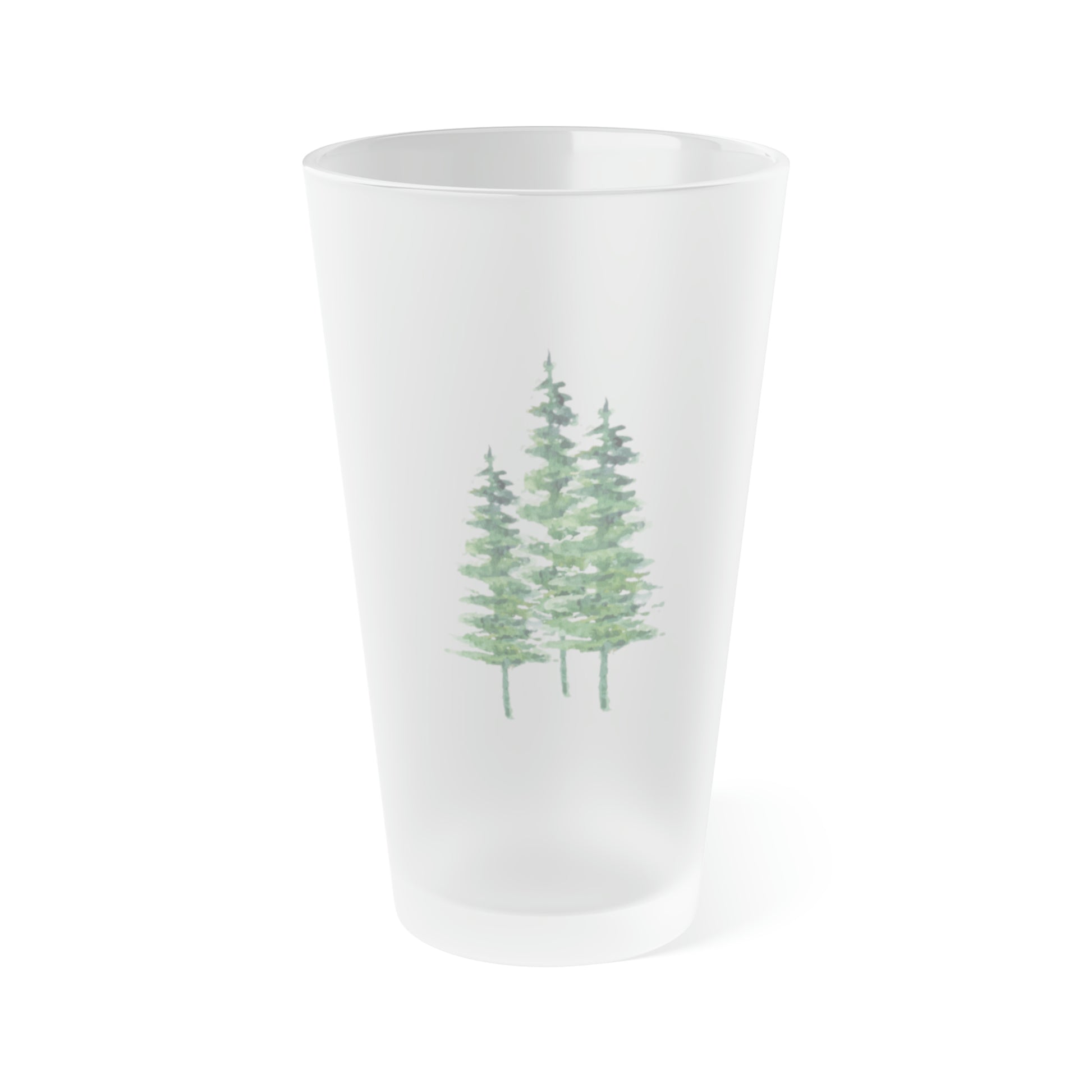 Pine Trees Frosted pints are very versatile – you can sell them individually as personalized items or in bulk as custom drinkware for hospitality businesses. These glasses come in one size: 16oz (0.47l), which is the standard pint size in the USA. The frosted matte finish, complemented by our nature pines design, the frosted matte finish with pine trees will make them stand out in any setting. Artwork printed in high-resolution and have a semi-translucent look.